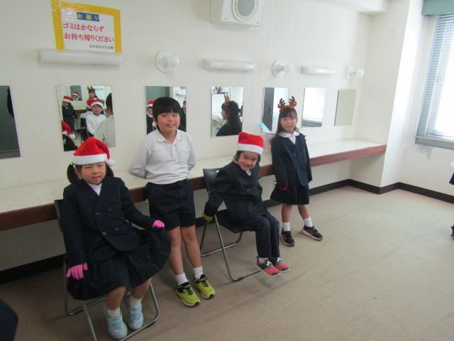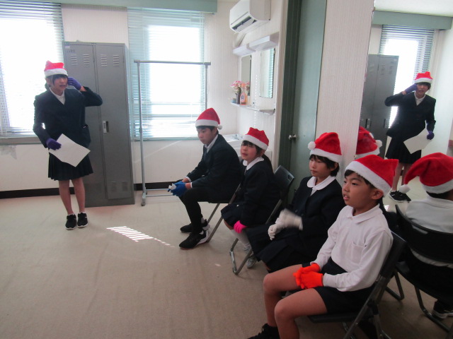 「ありがとうの花」を歌った後、ソプラノリコーダーとトーンチャイム、スズで「あわてんぼうのサンタクロース」を合奏しました。練習の成果を存分に発揮して、会場を温かい雰囲気に包みました。