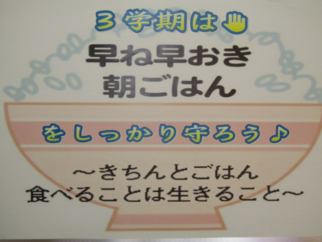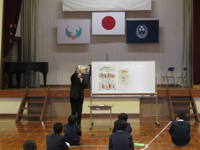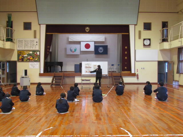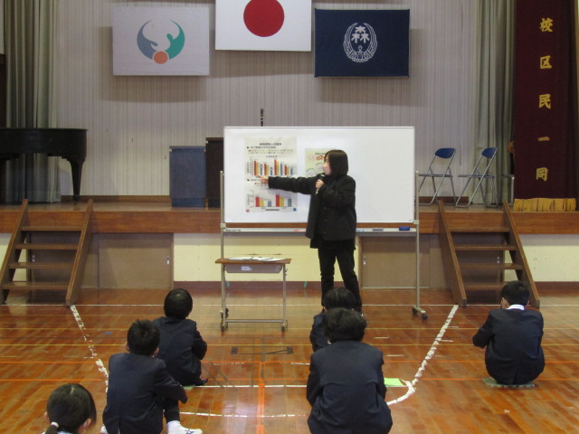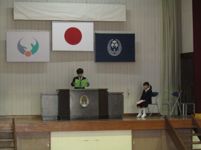 続いて、校長先生が3学期に守ってもらいたいことを、森っ子たちに伝えました。これまで全校集会等では、あいさつやメディアコントロール、睡眠などについて約束をしてきましたが、3学期は「朝ご飯をしっかり食べる」ことを重点目標に頑張ろう!と伝えました。