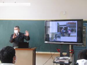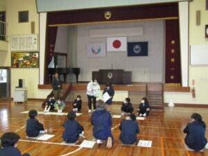 3校時は、家庭教育学級でした。志布志市総務課から2名の講師をお招きして、危機管理について学習しました。志布志市は8月にも日向灘沖を震源とする大きな地震がありました。このことから、地震発生時の避難の仕方や注意点、非常持ち出し品などについて理解を深めました。参加された保護者の皆さんは、災害派遣の経験などが基になったお話しに聞き入り、自分事として捉えていたようです。