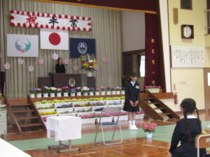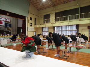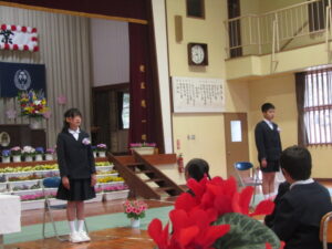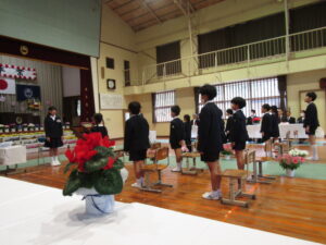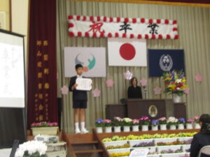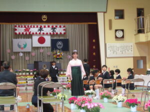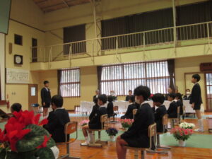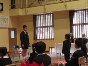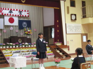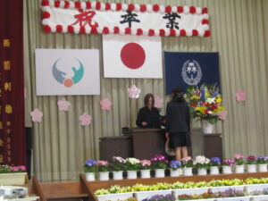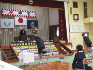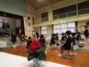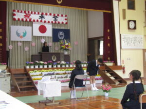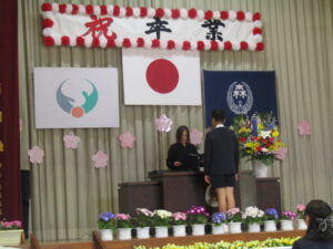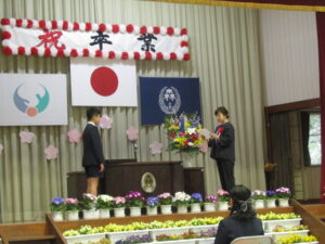 立派な所作で、卒業証書を受け取りました。式辞やお祝いの言葉も背筋かピンと伸びた大変良い姿勢で聞くことができました。