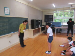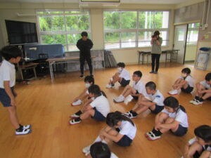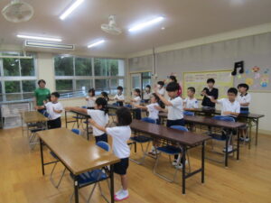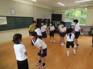 今回、校長先生は、学校教育目標「大好き自分、大好きみんな、大好き森山」 の意識付けのため、「大好き自分、大好きみんな、大好き森山」のそれぞれに、考案したポーズを発表しました。森っ子たちは、初めのうちは恥ずかしそうにしていましたが、慣れてくると、みんな元気よくポーズをとっていました。