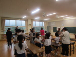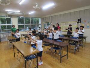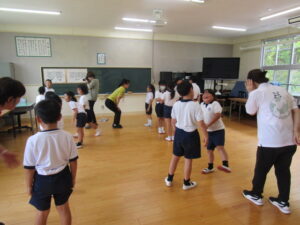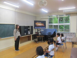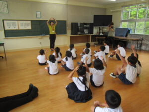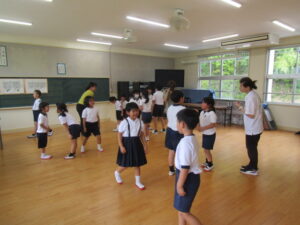 日付が変わって、翌日の21日(水)の活動は、全校音楽でした。この日は、「夏も近づく~~八十八夜~~」、でおなじみの「茶摘み」の手遊びをしました。比較的簡単なリズム遊びで、低学年の森っ子たちも上手に楽しむことができました。