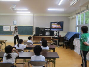 最後は、森山小で受け継がれている「森山太鼓」の今年の練習に向けて、昨年度の志布志市音楽発表会の様子を鑑賞しました。今年も、そろそろ太鼓の練習が始まります。秋の発表会をお楽しみに!
