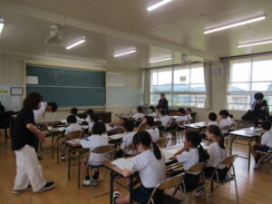数としては、少し増えたくらいですが、いつもよりも賑やかな雰囲気の授業を、子どもたちは楽しみました。田之浦小学校、潤ケ野小学校のみんな、これからも仲良くしてくださいね!!!