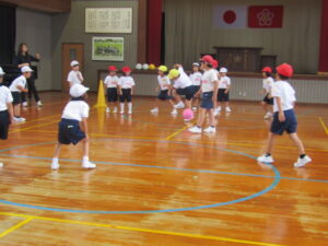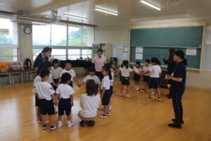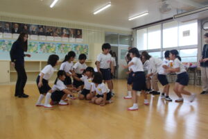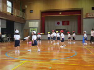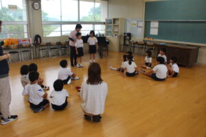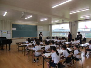 5月29日(木)、集合学習を行いました。近くの小規模校(田之浦小、潤ケ野小)の1年生から4年生までが、今年は田之浦小学校に集まって、音楽と体育の勉強を一緒にしました。