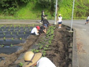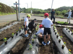 6月13日(金)、校区花壇の花植えを行いました。森山校区コミュニティ協議会の役員や事業文化部の方々が花壇を耕して、花の苗を準備してくださいました。いつもありがとうございます。
