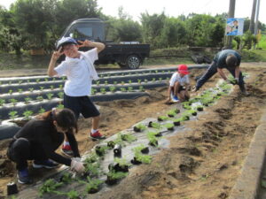 今年はサツマイモも植えました。秋の収穫が楽しみです。