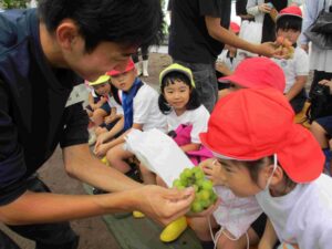 9月17日(水)は、森山小から市のバスを利用して鹿屋農業高校へ行き、交流学習を行いました。今年で2年目となります。1~3年生は、ぶどうの収穫体験と試食を、4~6年生は、菓子パン作りをそれぞれ行いました。