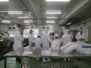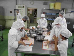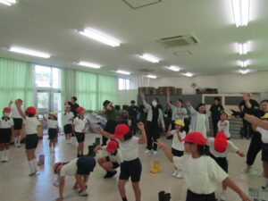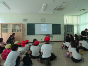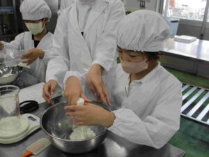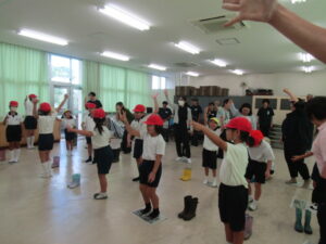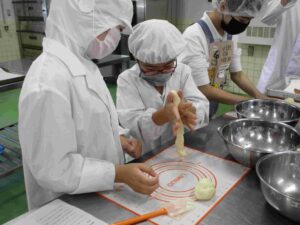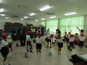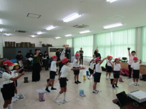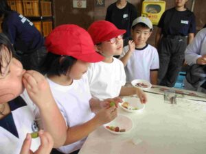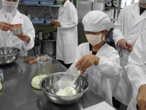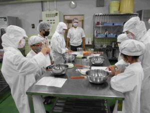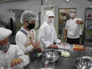 続いて、4~6年生の菓子パン作りです。見たことのない大きな調理器具に囲まれての実習でしたが、楽しく活動できました。     最後に、お別れの会をしました。昨年とはまたひと味違う活動ができて、とても充実した交流学習となりました。鹿屋農業高校の生徒の皆さん、先生方、本当にありがとうございました。次回は、10月1日(水)、森山小学校で花の播種(種まき)体験の出前授業を計画しています。よろしくお願いします。