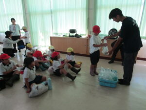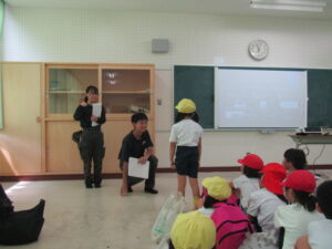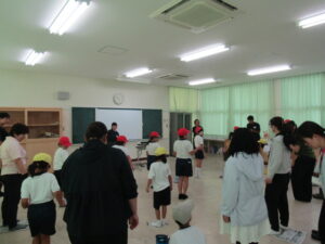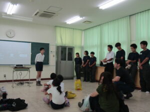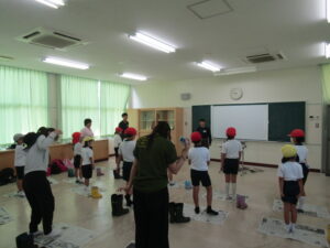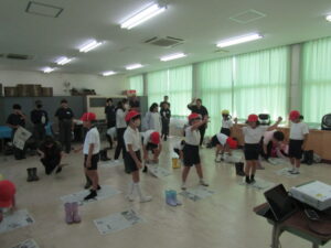 最初に始まりの会をしました。高校生のお兄さんとお姉さんが今日のプログラムを発表した後、アイスブレイクとして、「新聞紙じゃんけん」をしました。おかげで、お互いに緊張がほぐれて次の活動にスムーズに移ることができました。