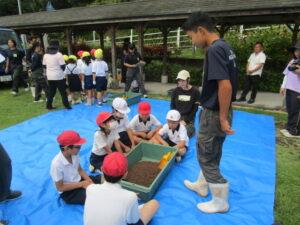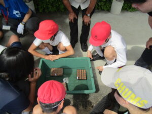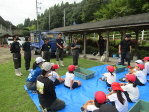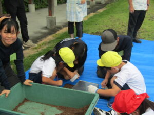 10月1日(水)、鹿屋農業高校の皆さんにお越しいただき、出前授業として「播種(はしゅ)」の仕方を教えていただきました。「播種」とは、平たく言えば、種まきのことです。農業高校では、専門的なやり方で種まきをしています。その方法を教えていただきました。今回は、トルコキキョウとリビングストンデイジーの種をまきました。
