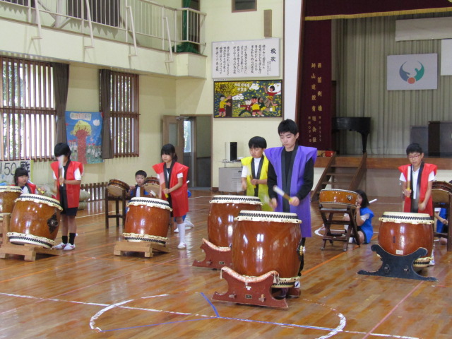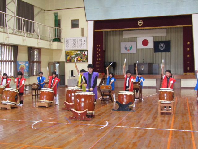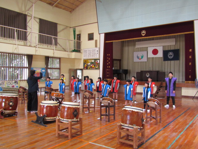 11月28日(金)に行われる音楽発表会に向けた練習が、仕上げの段階に入っています。伝統の森山太鼓は、今年も高学年を中心に、迫力のある演奏ができるようになってきました。また、本番同様、はっぴを着て、舞台への入退場を想定した練習もしています。