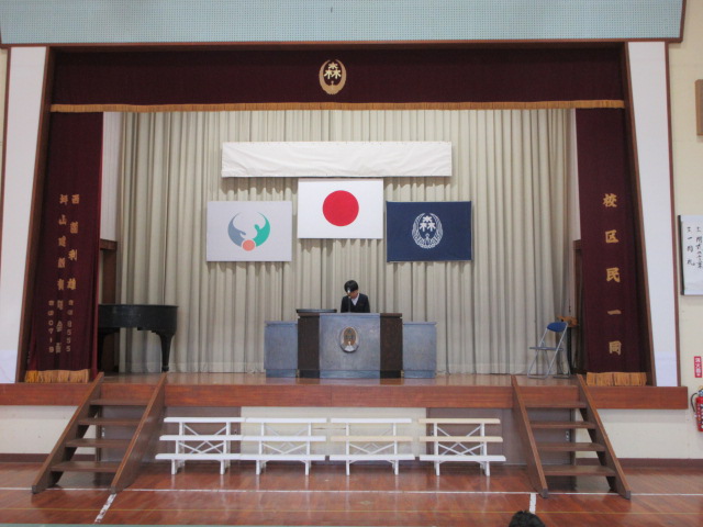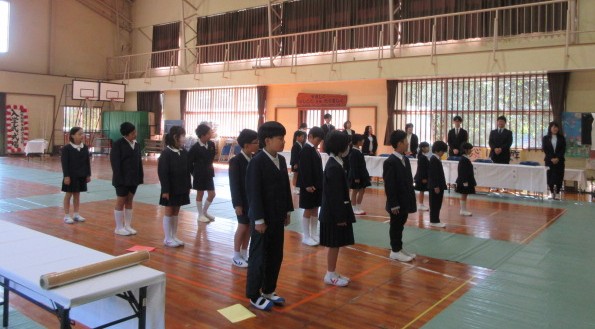 続いて、始業式です。代表児童が、高学年として先手挨拶と勉強(算数)をがんばるという1学期の目標を発表してくれました。その後、校長先生のお話と、担任発表・職員紹介がありました。