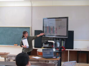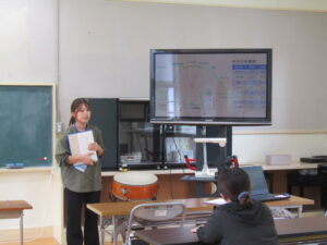 まずは、家庭教育学級からです。保護者の皆さんにとって、何十年!?ぶりの給食を食べた後、給食センターからお招きした栄養教諭の中尾先生に、給食の献立や栄養価、給食の歴史等、給食について幅広く、いろいろ教えていただきました。