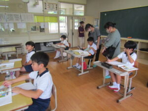 続いて、「道徳」の授業参観です。道徳の内容は、難しい部分もありますが、「お友達と仲良くする」、「ルールを守る」、「人が嫌なことを言わない(しない)」など、他者とともによりよく生きるための「道徳性」を養うために非常に重要です。森っ子たちは、おうちの方々の前で、少し緊張した様子でしたが、真剣に取り組んでくれました。