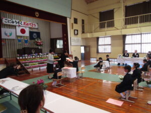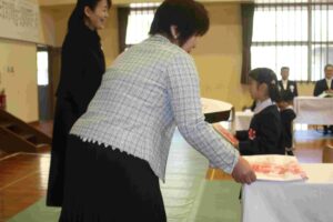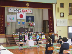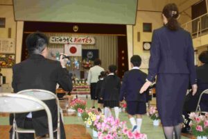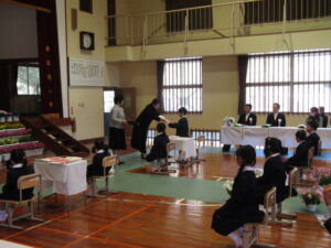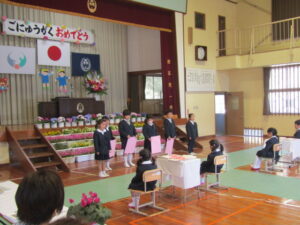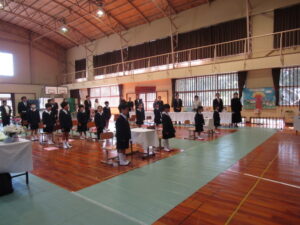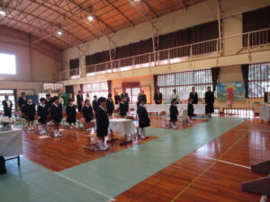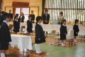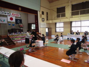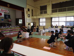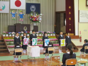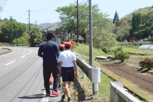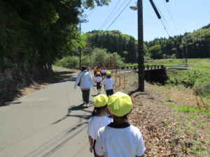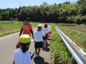 1・2年生は、正門から右に出て、道重方面へ向かいました。