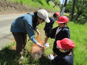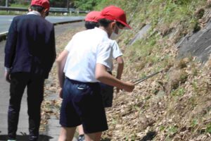 3・4年生は、正門から左に出て、少し進んで左に曲がり、持久走大会のコースを中心ゴミを拾いました。
