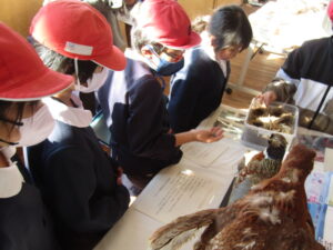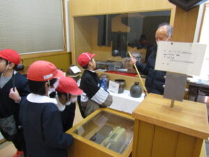 昔、地元で使われていた生活用具や農業で使われていた農具も見学しました。森っ子たちは、昔の道具を不思議そうに見学していましたが、「昔は大変だったんだね」「今はいっぱい機械があるね」などの感想を持ち、現代のありがたさを感じたようでした。