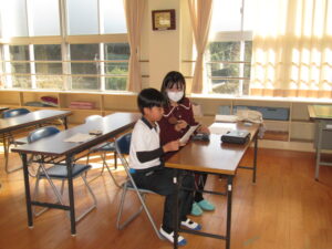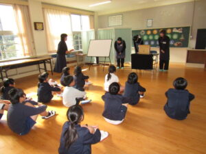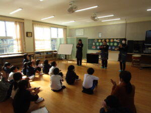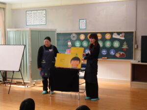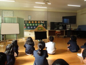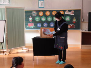 大盛り上がりの「おはなし会」の最後には、代表児童がお礼を伝えました。堂々として、とてもかっこよかったです!! 志布志市立図書館の方々、楽しい時間をありがとうございました。
