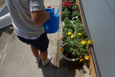子供たちがすすんで水をかけてくれました。ありがとう。
