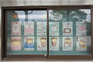 保健室の前にあります。あなたは「コッコさん」?「ホーホーさん」?