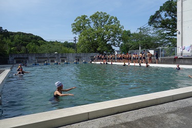 最高の水泳日和でした。5年生がさっそくプールに入り,水泳学習を始めました。