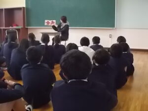 2月14日、土曜授業を終えた教室に、PTA家庭教育研修部の皆様による「読み聞かせ」の優しい声が響きました。
