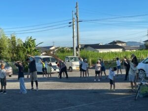 夏休みに入り,子供たちの健全育成のために各地域で様々な活動が行われていると思います。北大原地域では7月と8月の各1週間ラジオ体操を行っております。早朝より親子で参加している姿も見られました。地域で実施してくださる子供たちのための取組に感謝いたします。