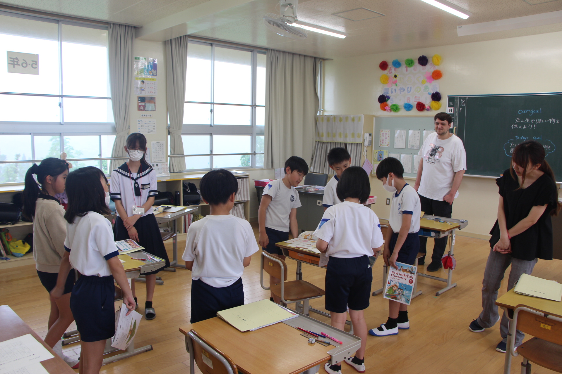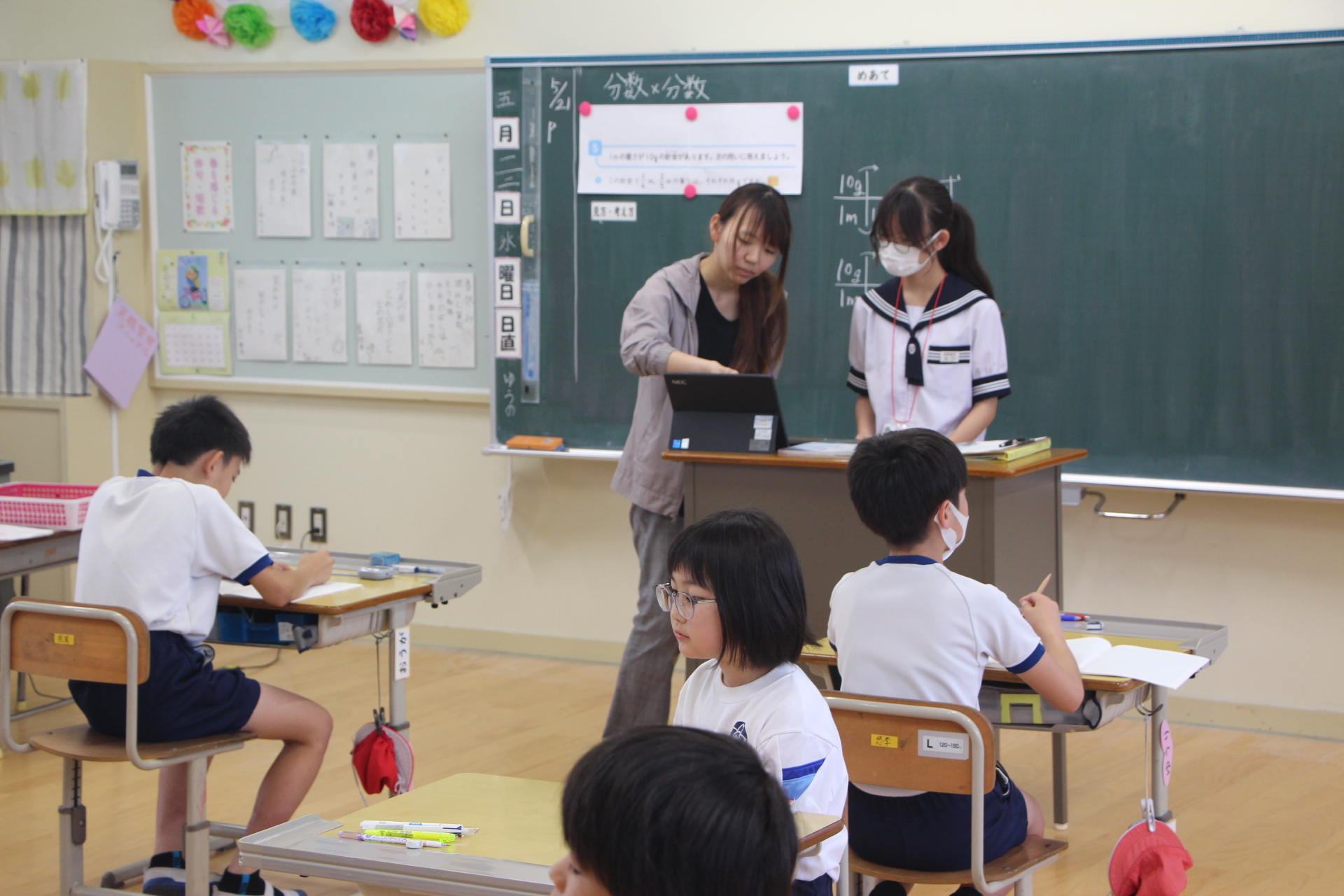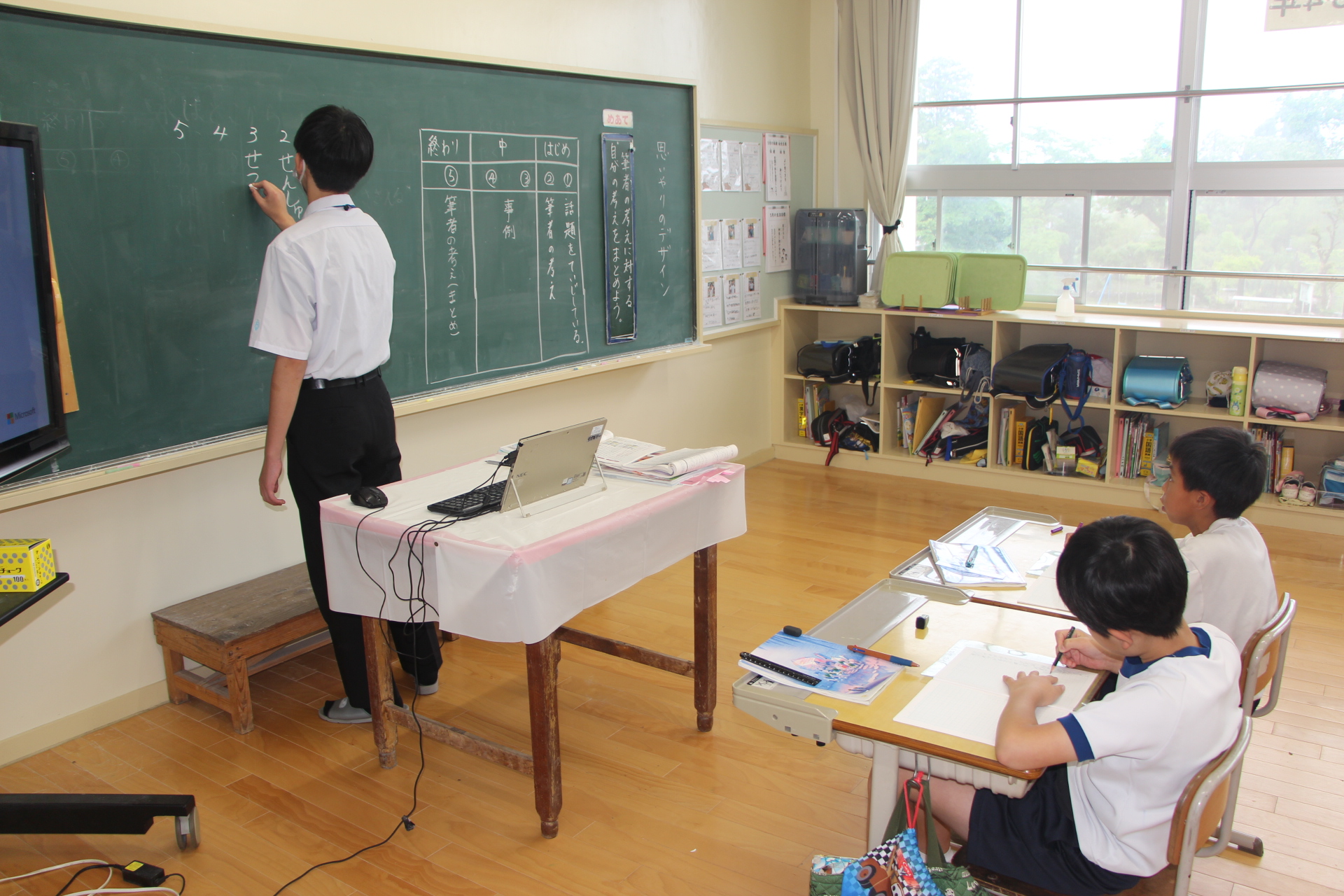二人には,各クラスを回ってもらいました。授業によっては,参観だけでなく「先生」役も務めました。とても立派でした。優しく丁寧な声掛けに,児童も笑顔で学習に取り組んでいました。ずっといてほしい・・・。