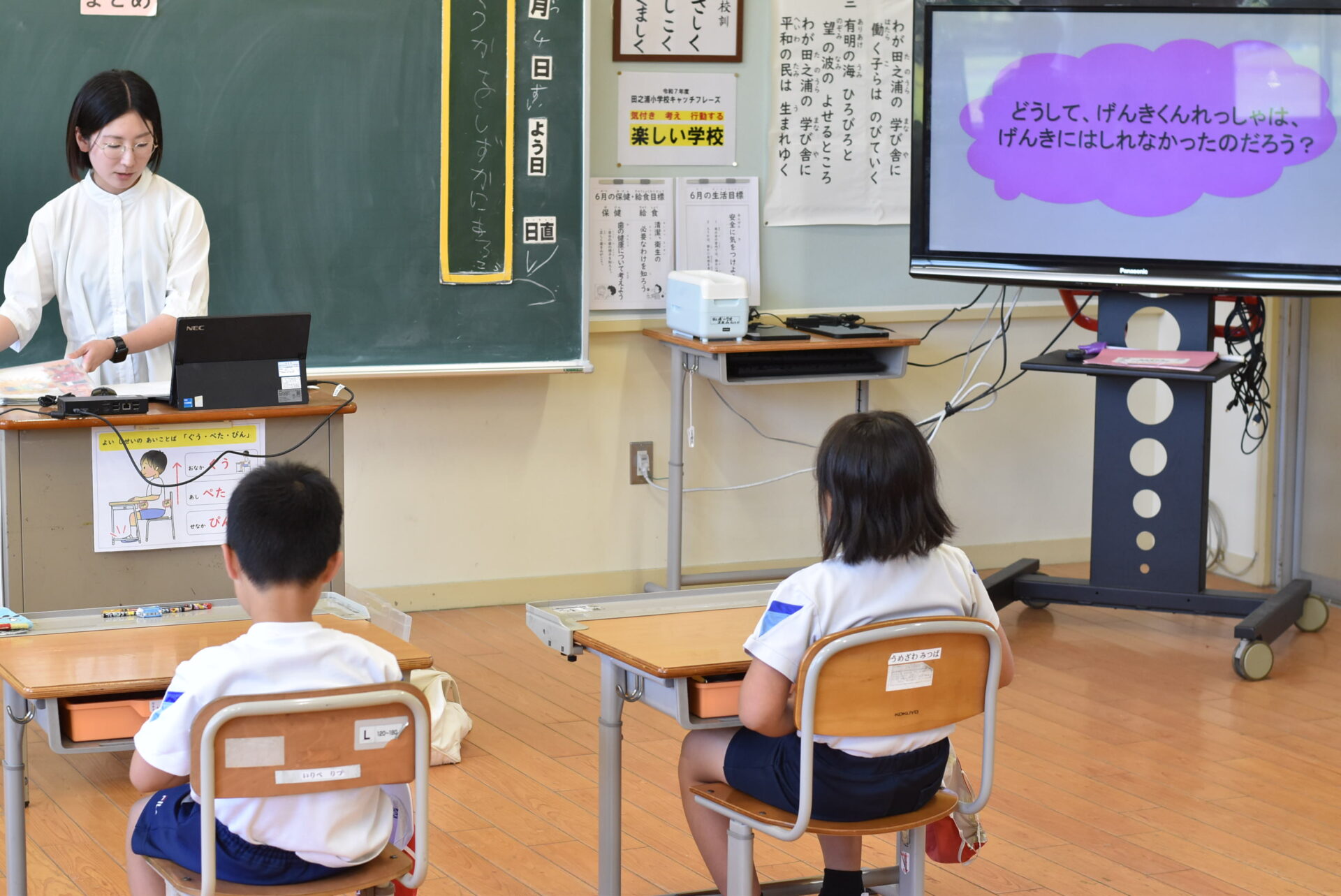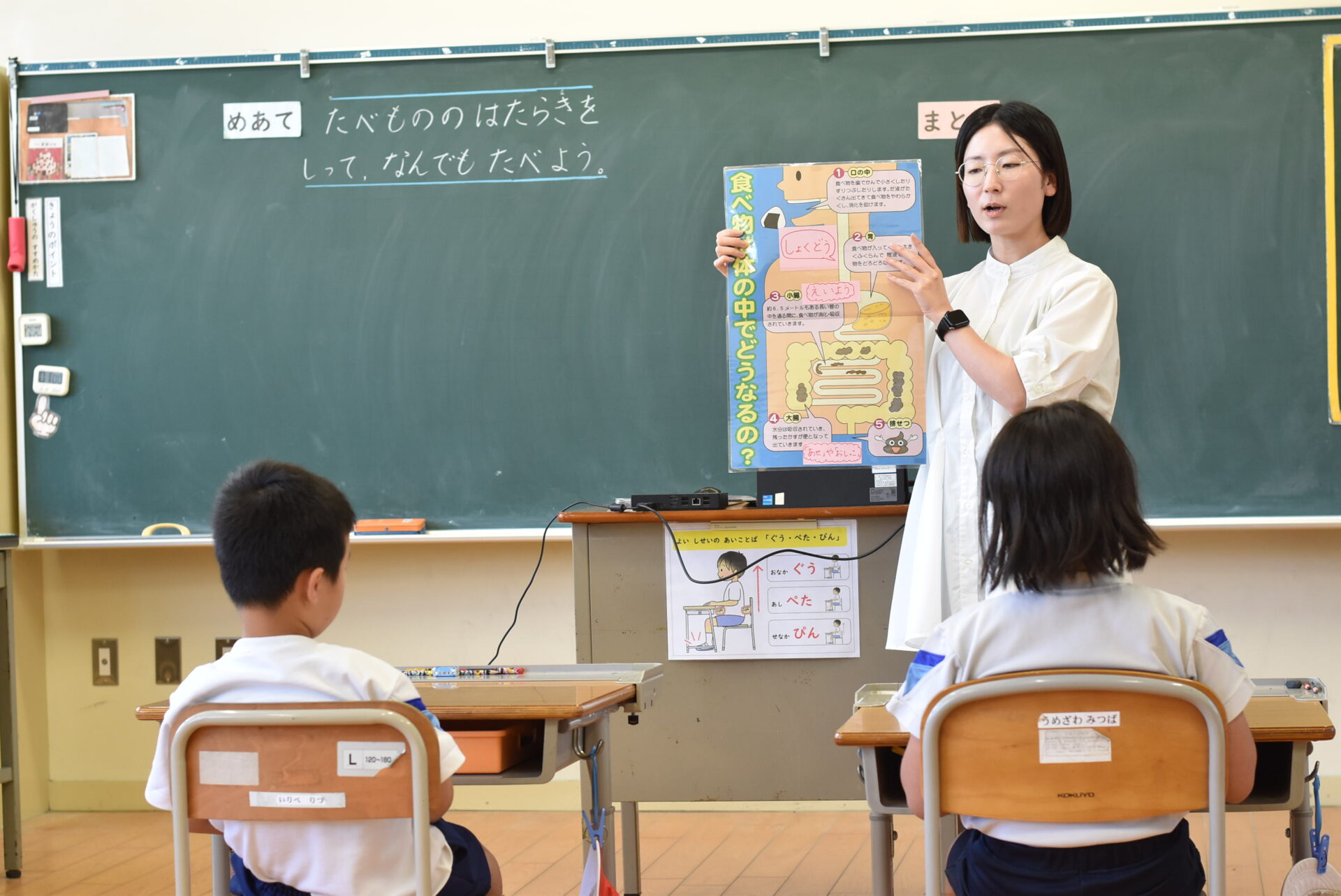 6月4日 食育指導&交流給食 たのうらフォトニュース 作成者 tanourasyou_admin公開日 2025年6月6日2025年6月10日 食育指導&交流給食 4日(水),給食センターの栄養教諭の先生に来ていただき,1・2年生を対象にした食育指導をしました。よく食べることの意味やバランスよく食べることの大切さを,分かりやすく教えてくださいました。 指導をしていただいたあと,栄養教諭の先生と一緒に給食を食べました。食材の名前やはたらきを教えていただき,いつも以上に食べることの大切さを感じながら,給食を食べていました。バランスよくたくさん食べて,健康な体をつくってほしいです。