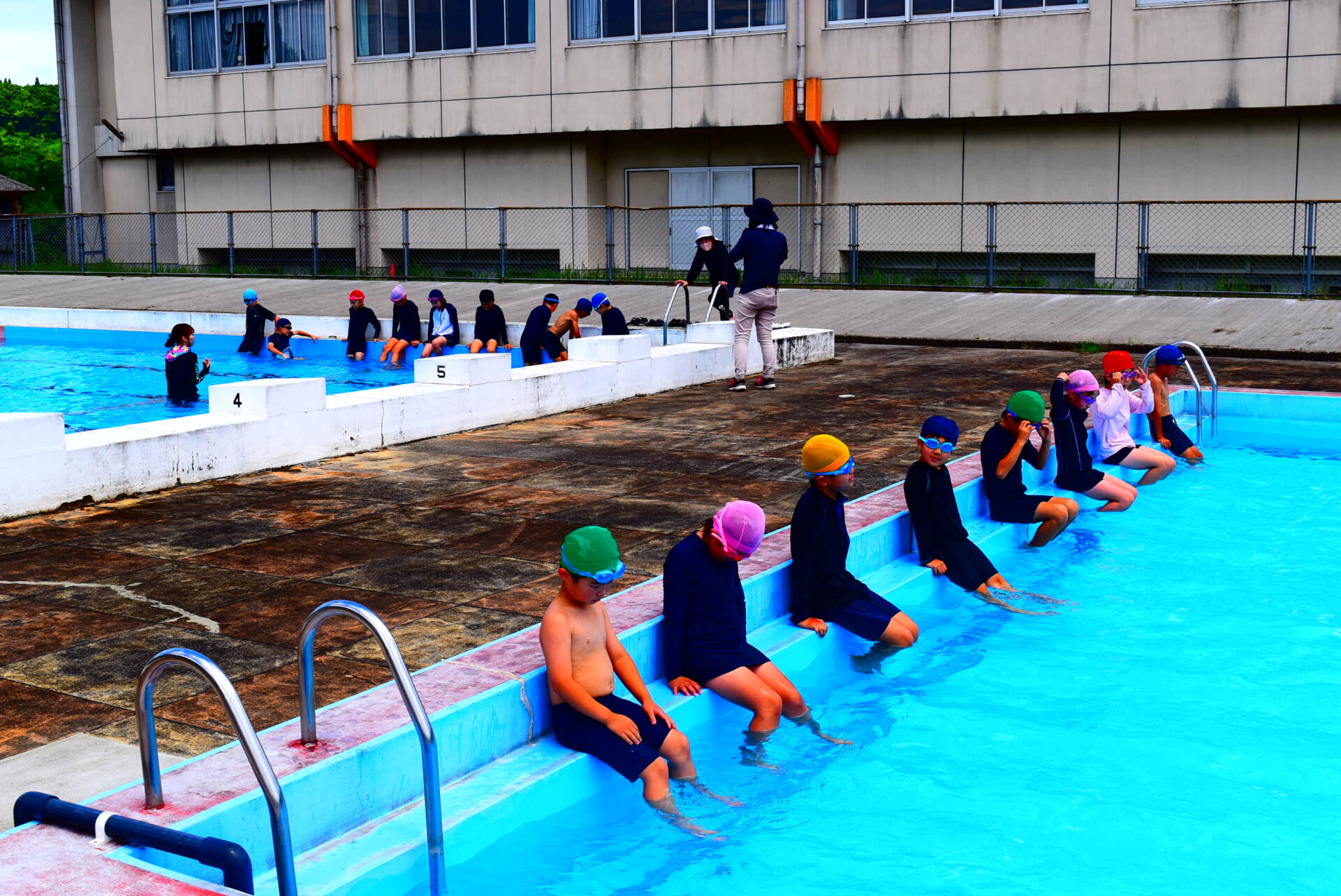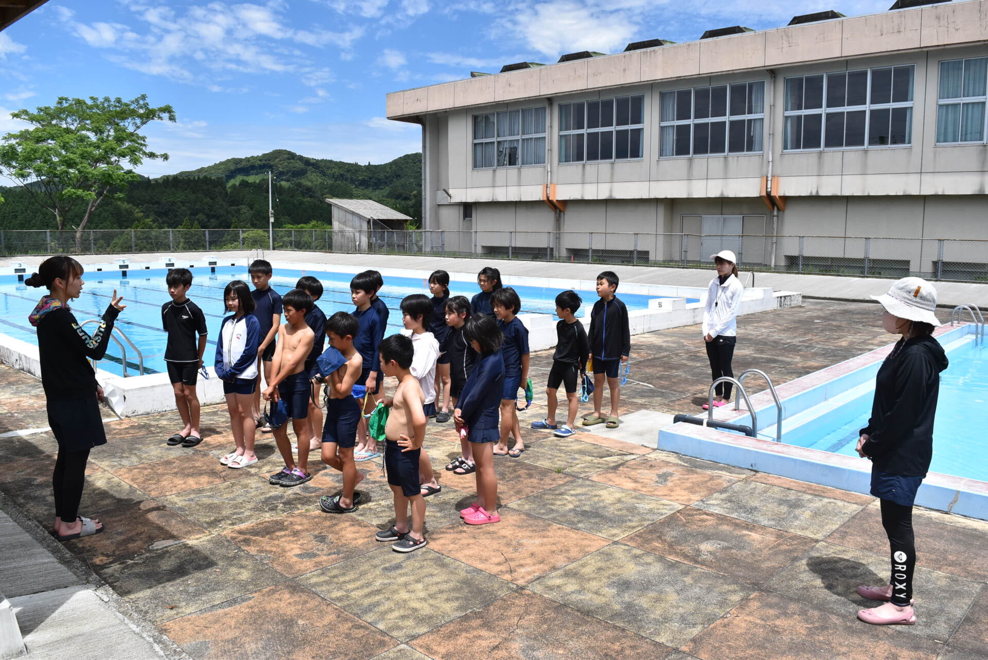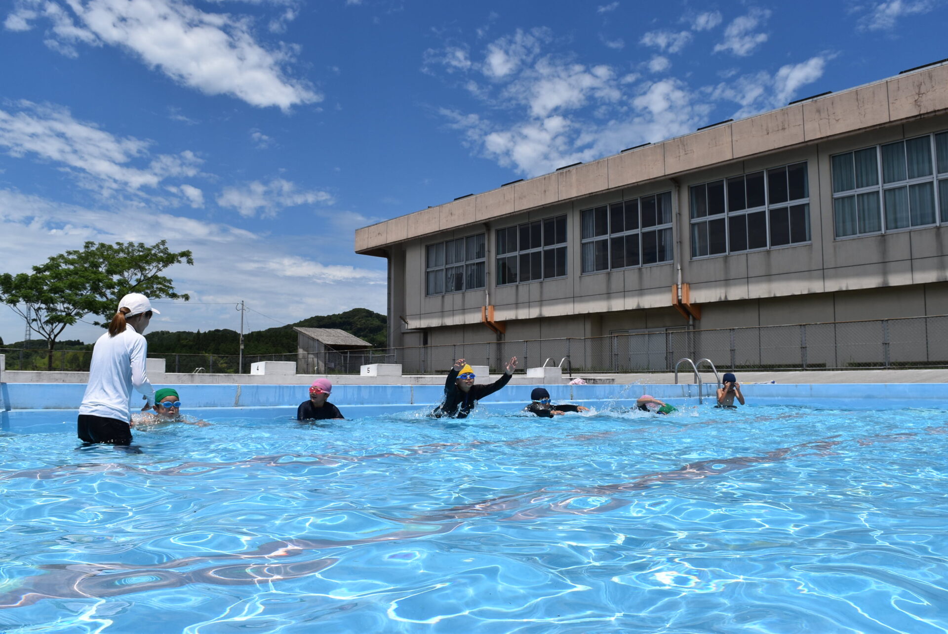 水泳学習は,火曜日と木曜日に,全校児童で行います。自分の目標をしっかり持ち,泳力を伸ばしてほしいです。頑張って練習に取り組む姿,成長する姿がとても楽しみです。
