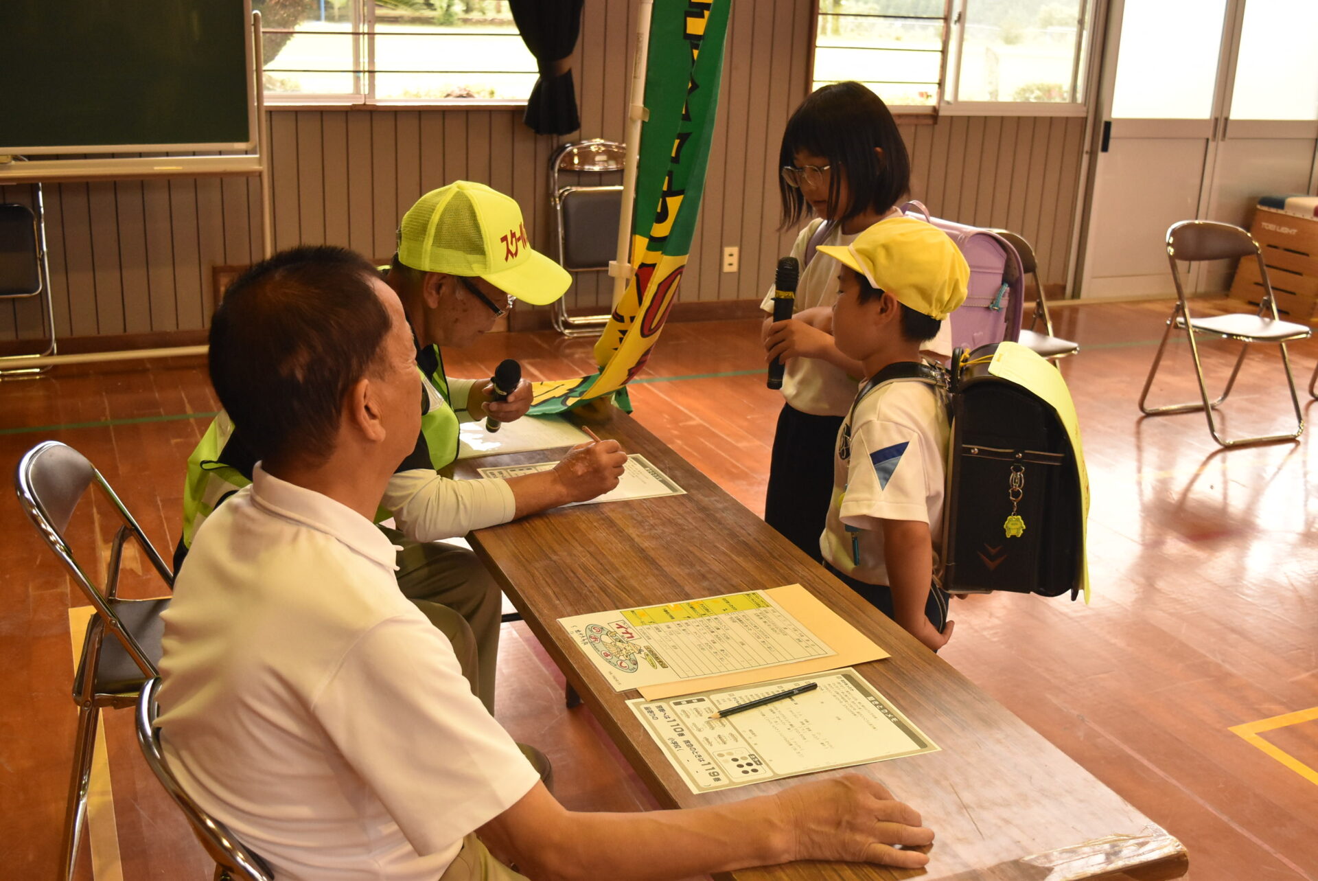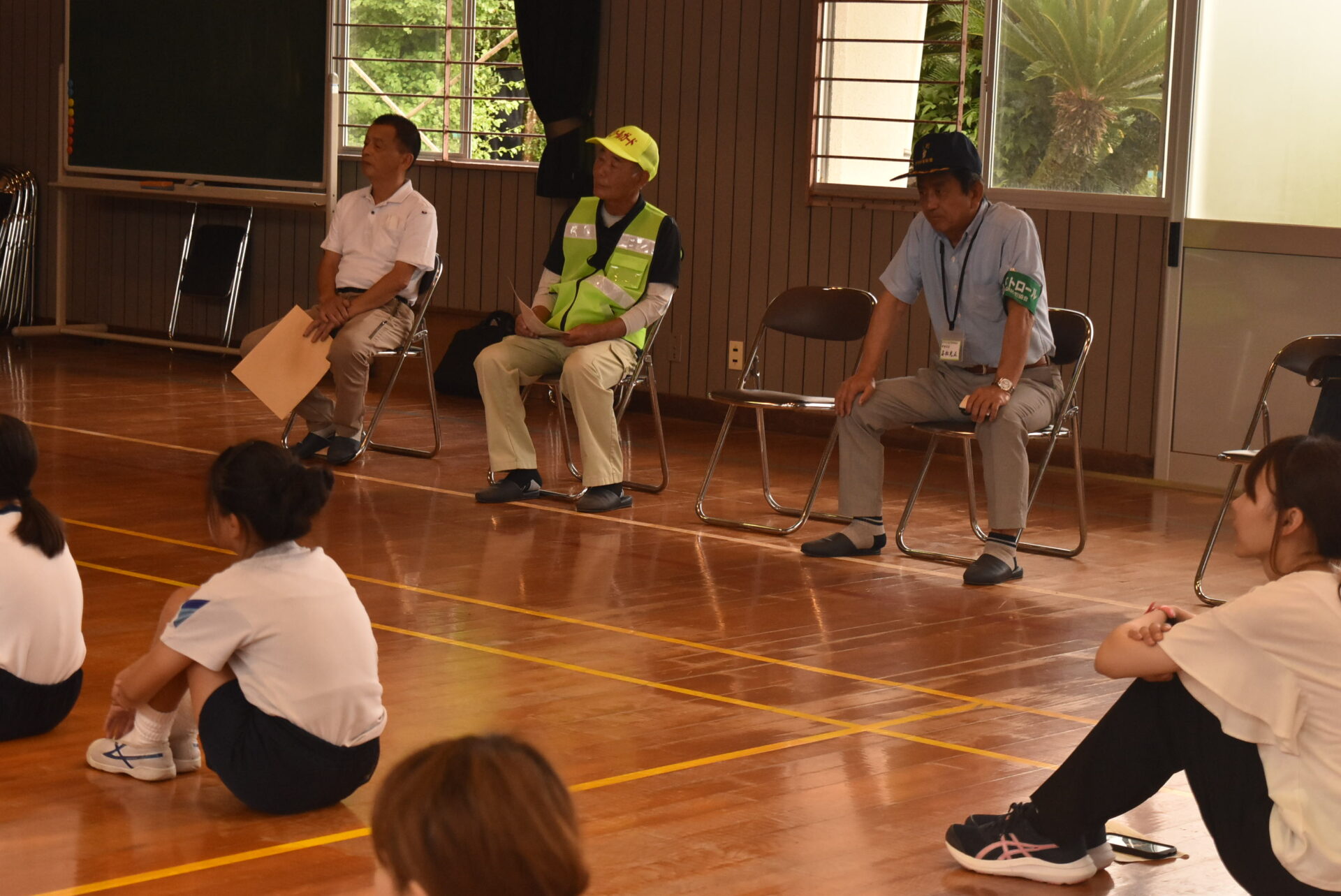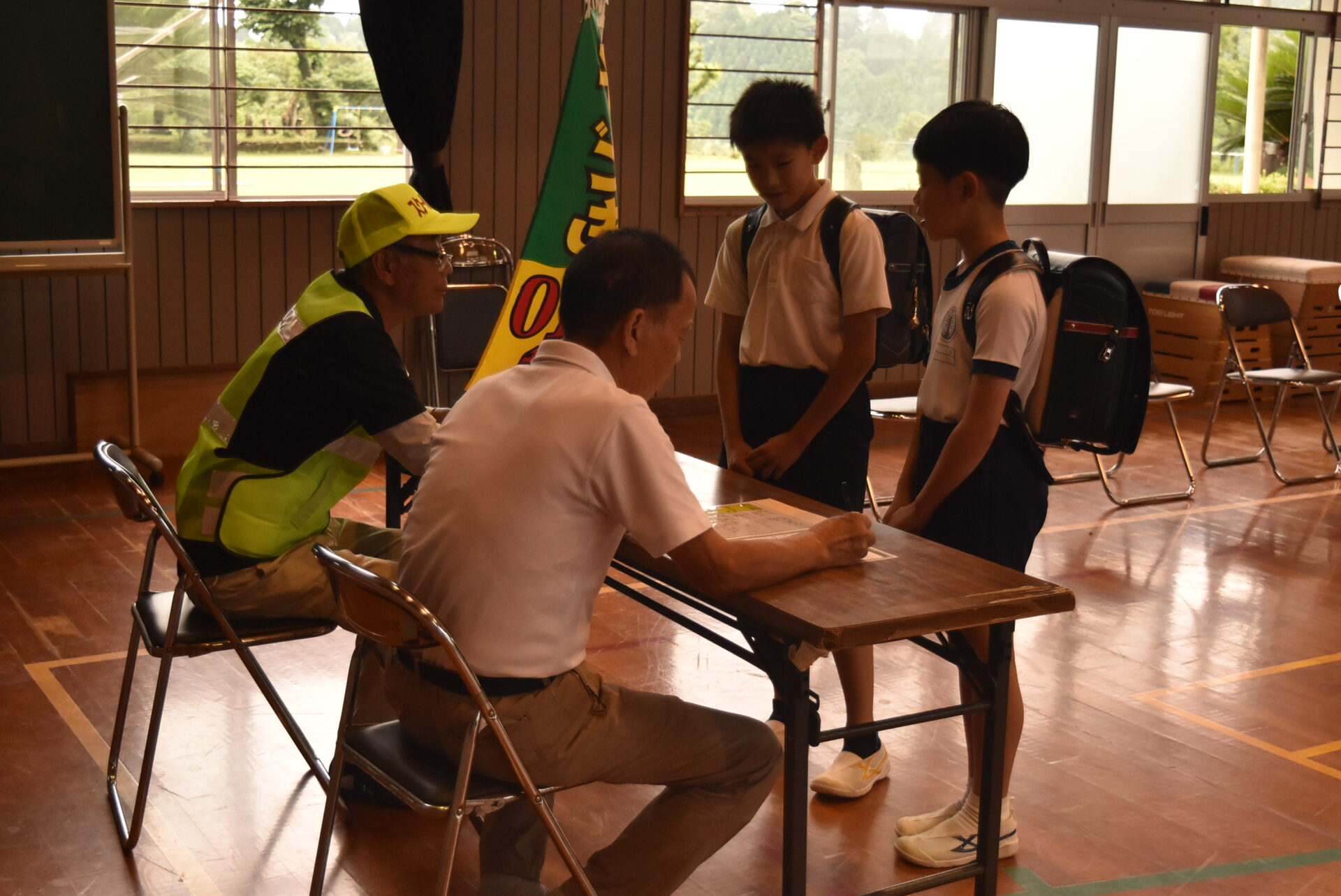 訓練には,志布志警察署の方,防犯協会の方,スクールガードリーダーの方,子ども110番の家の方が来てくださいました。これからも,児童の安全を守ってくださるよう,よろしくお願いいたします。たった1つの命を守るための訓練,みんな真剣に学習することができました。