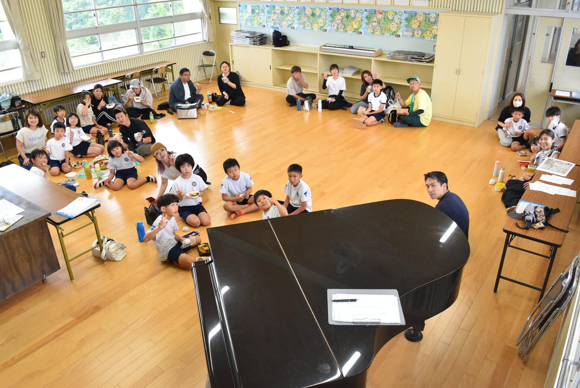 授業が終わった後は,午後の学校レクリエーションを前に,親子で昼食。音楽室で会話を楽しみながら,お弁当を食べました。