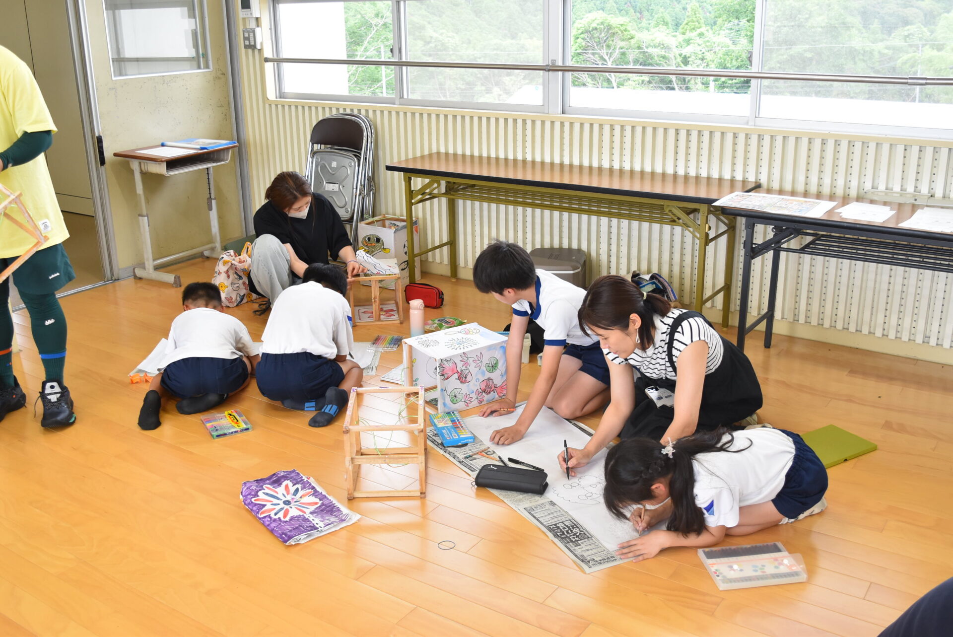 次は灯籠づくりです。8月2日(土)に開催される田之浦山宮神社夏祭りで,会場にかざる灯籠を親子で作りました。思いのこもった素晴らしい作品が出来上がりました。