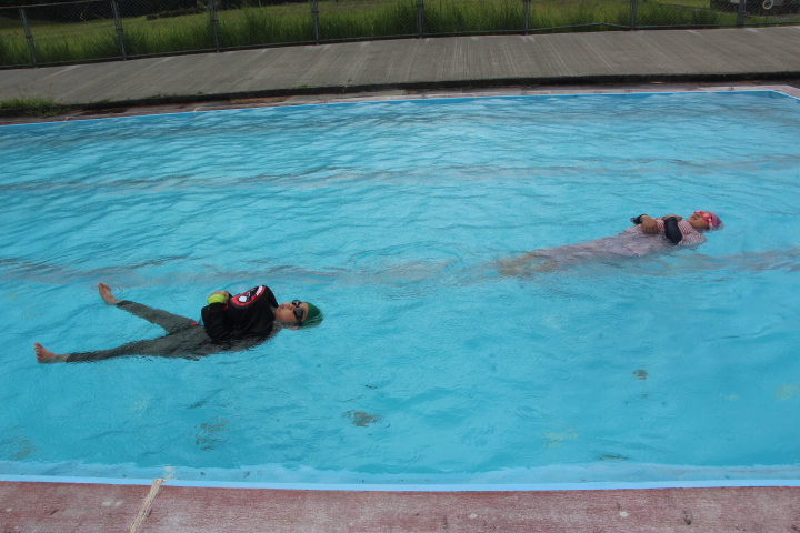 浮くことの練習です。全身の力を抜かないと、上手に浮かべません。