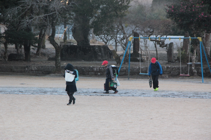 -6℃ 寒さに負けず 作成者 tanourasyou_admin公開日 2026年1月9日2026年1月16日 -6℃ 寒さに負けず! 冬を楽しむ 1月9日(金)は、冷え込みました。田之浦小学校の気温は「-6℃」!!子供たちは、寒さに負けず元気に登校。霜柱を踏んで感触を味わったり、氷を触ったりして、寒さを楽しんでいました。