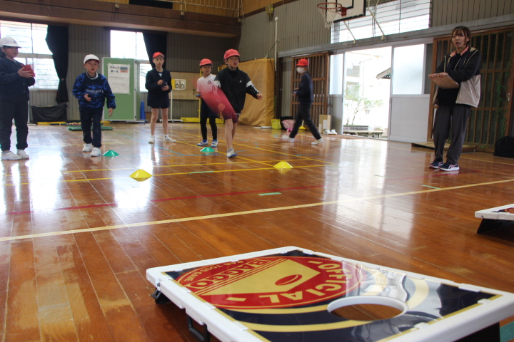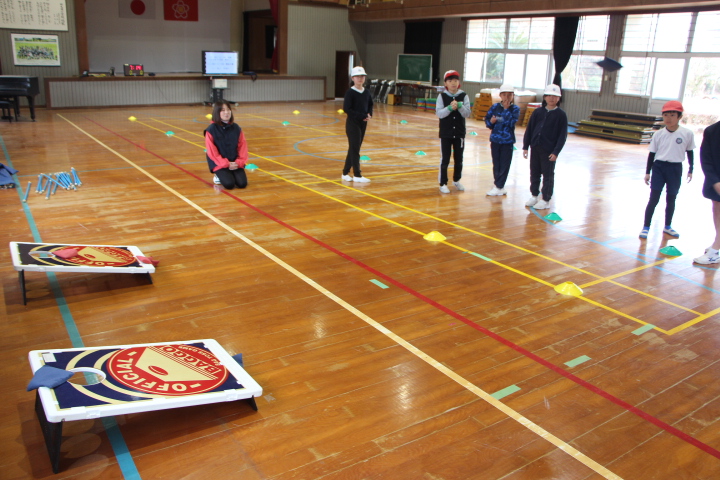 2月6日(金)、県総合体育センターの先生方2名にお越しいただき、ニュースポーツの体験活動をしました。体験したのは、「ボッチャ」「スカットボール」「バッコー」「スカイクロス」「キャッチング・ザ・スティック」の5種目。聞き慣れない種目もありましたが、ルールの説明を聞くと、誰もが簡単に楽しめるものでした。