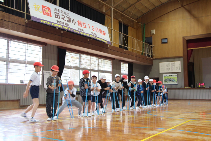4つの縦割り班に分かれて、各種目を体験しました。助け合ったり、協力したり、応援したり、みんなで楽しく活動することができました。スポーツの楽しさを味わうことができるよい機会となりました。