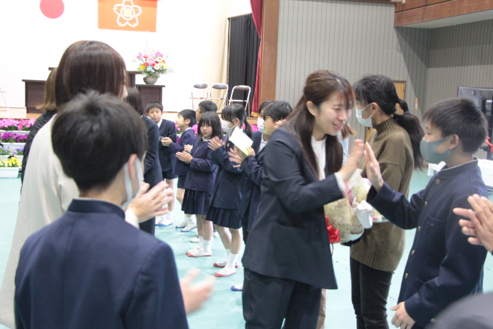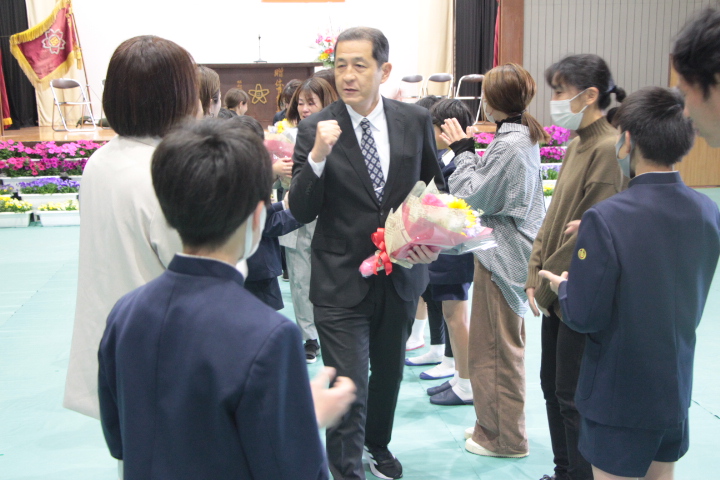 最後は、花道をつくり、離任される先生方をみんなで温かく送り出しました。