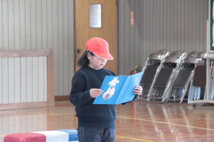 そして、発表開始。それぞれの作文発表のあと、かけ足縄跳びと一輪車を披露してくれました。