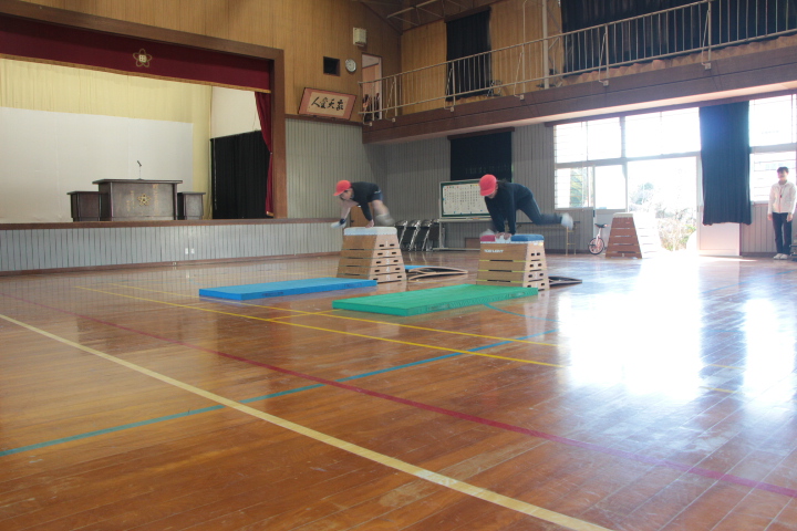 さらには跳び箱運動の発表。演技前に、先生に頼らず、自分達で打合せを行っている姿に感動しました。成長しました。