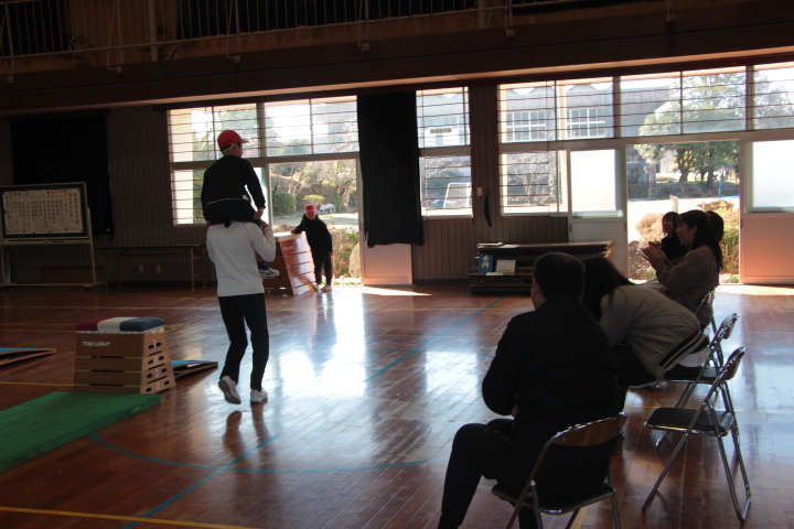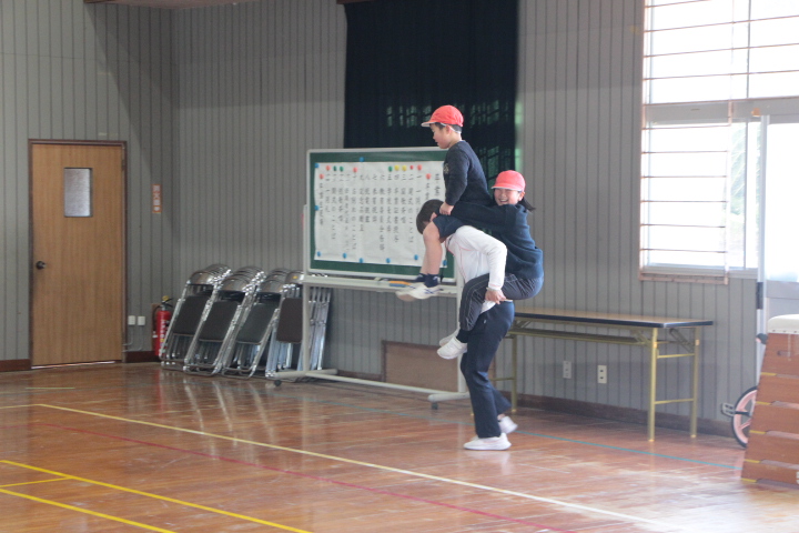 そして肩車の発表。子供たちのリクエストによる発表だったそうです!担任も頑張っています!