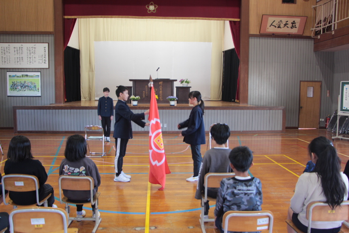 最後は、校長先生から2人に熱いメッセージ。それぞれ一人ずつの学年で学びながらも、日々の学校生活や行事を通して大きく成長した姿を称え、これまでの頑張りをねぎらいました。そして、来年度から始まる新しい環境でも、新しい級友と協力し、自信をもって歩んでほしいという励ましの言葉が贈られました。