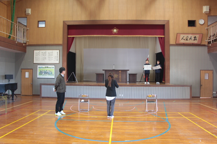 3月13日(金)1校時、1年生1名・2年生1名による「ありがとう発表会」をしました。2人に感謝の気持ちがこもった招待状をもらい、担任以外の職員が参加しました。