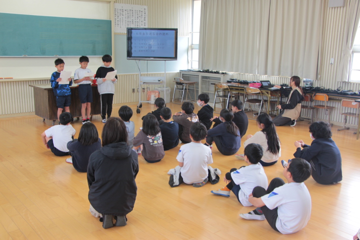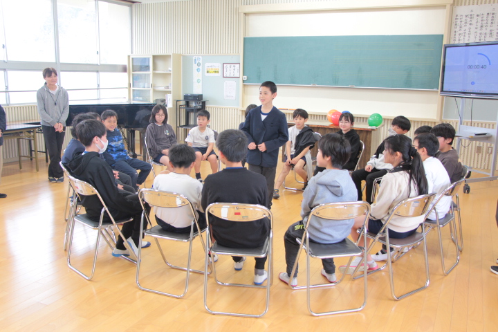 3月18日(水)の昼活動・児童集会で、「6年生を送る会」を実施しました。これまで、6年生が中心となって進めていた児童集会ですが、今回は4・5年生が中心となって企画・進行を行いました。会では、みんなで協力して楽しむ風船リフティング大会や、座れなかった児童が、6年生に何か質問するという「田之浦バスケット」など、心温まるプログラムが続きました。