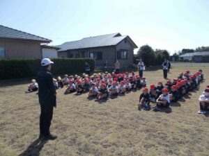 令和7年度3回目となる津波避難訓練。今回は,2時間目の休み時間に抜き打ちで行いました。運動場で遊んでいた児童は建物から離れ,中央で一時避難行動。その後,高台へ避難しました。