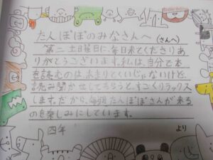 お世話になった読み聞かせグループたんぽぽの皆さんに,感謝の気持ちを伝えるお礼の会を行いました。