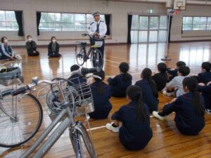6年生が学級PTA活動で、自転車講習会を行いました。4月からは中学生。無事故無違反で安全に登校しましょう!!