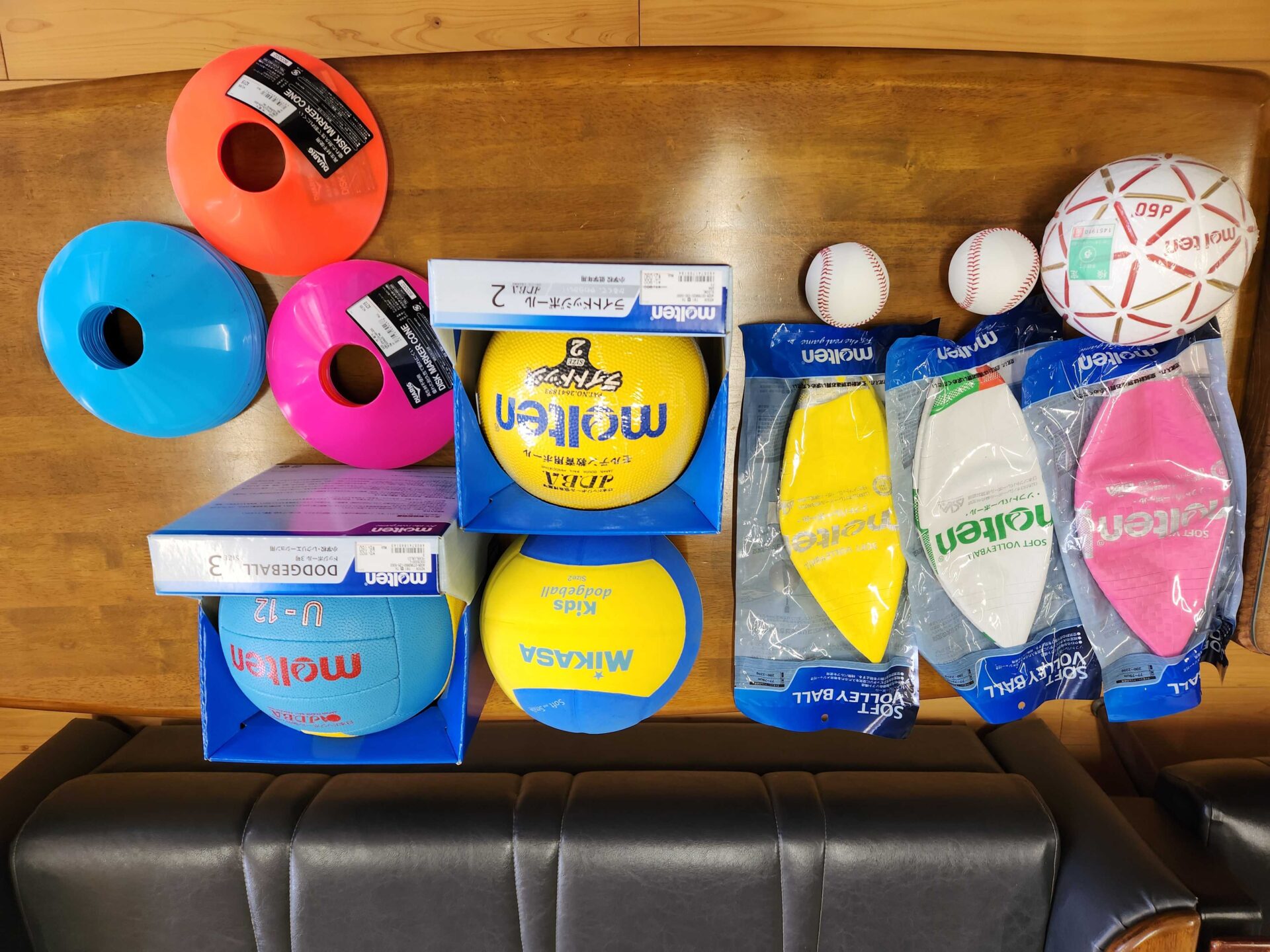 ふるさと自慢市の焼きそば、焼き芋、お花の売上げと、読み聞かせグループ「ウスカワゴロモ」サークル応援ポイントでドッジボール3個、ハンドボール1個、柔らかい野球ボール2個、ソフトバレーボール3個、マーカー40個を購入しました。ありがとうございました。