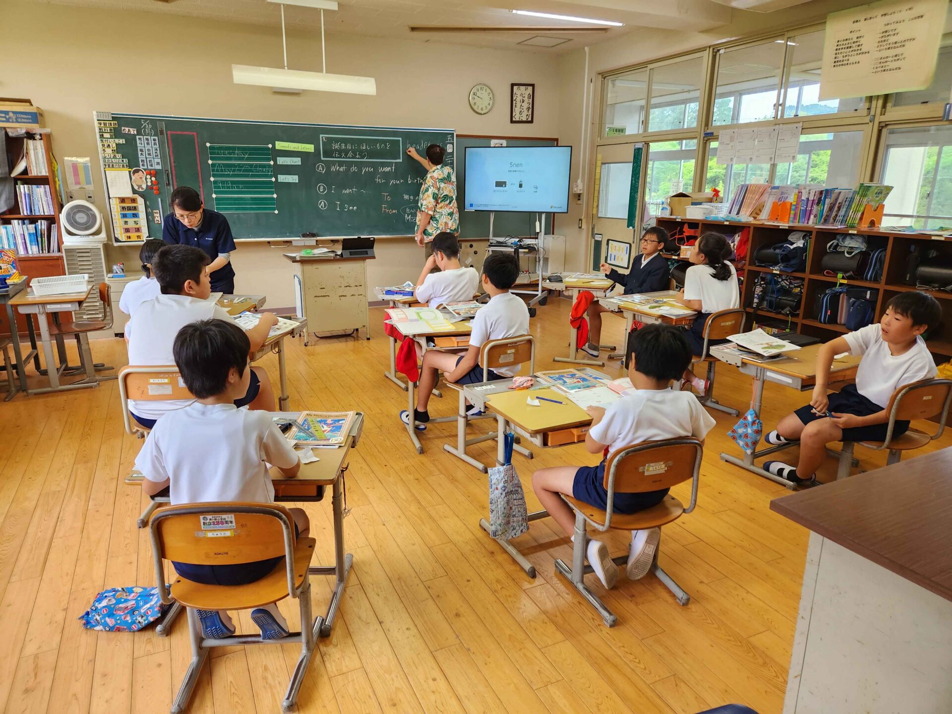 火曜日はアンソニー先生来校日です。元気にわいわい外国語の勉強をする声が聞こえてきました。